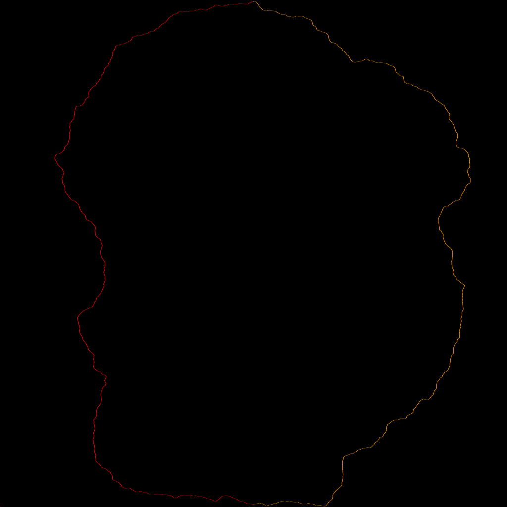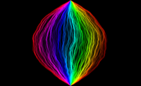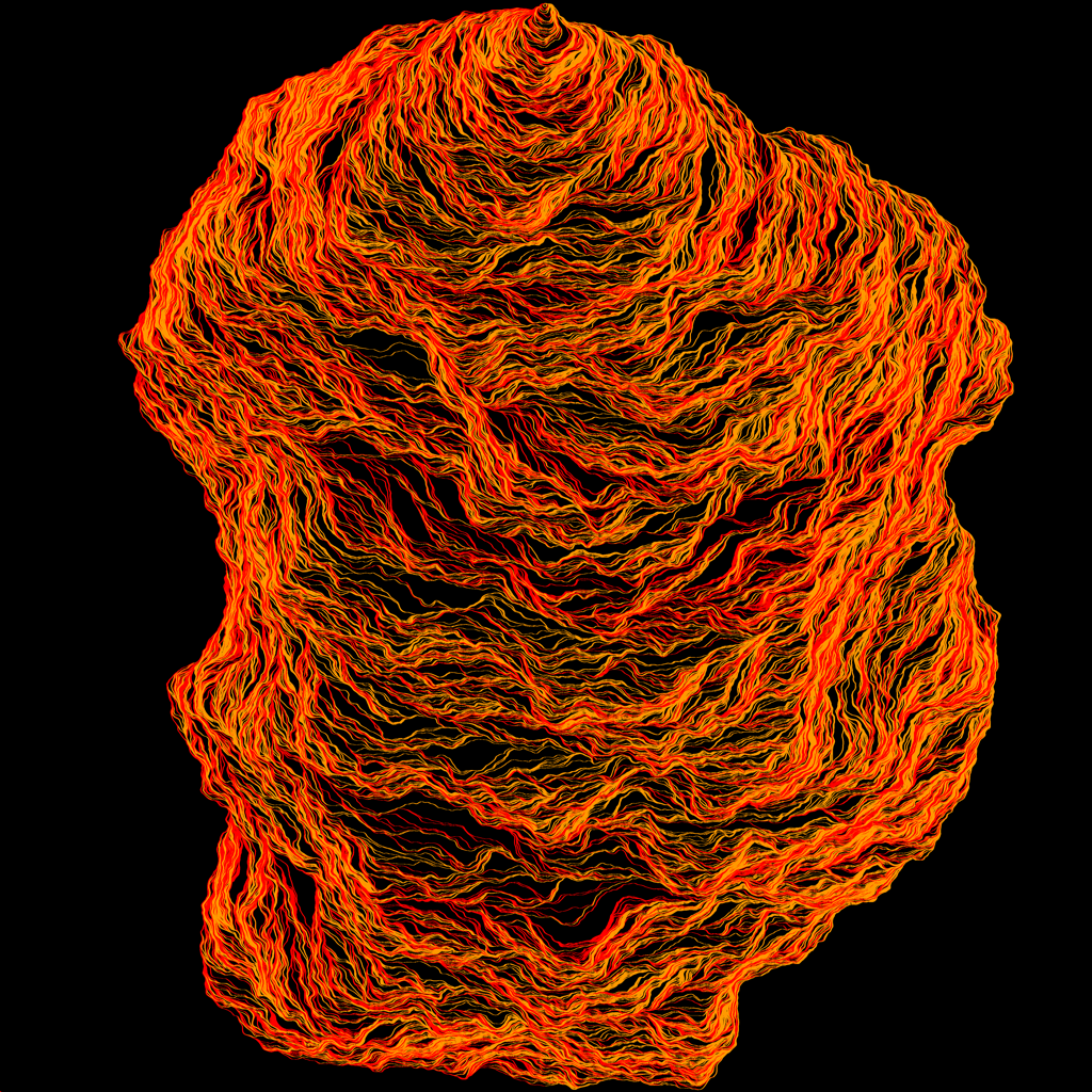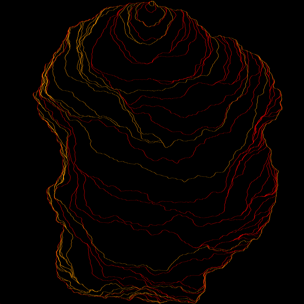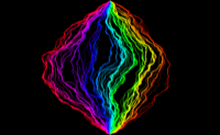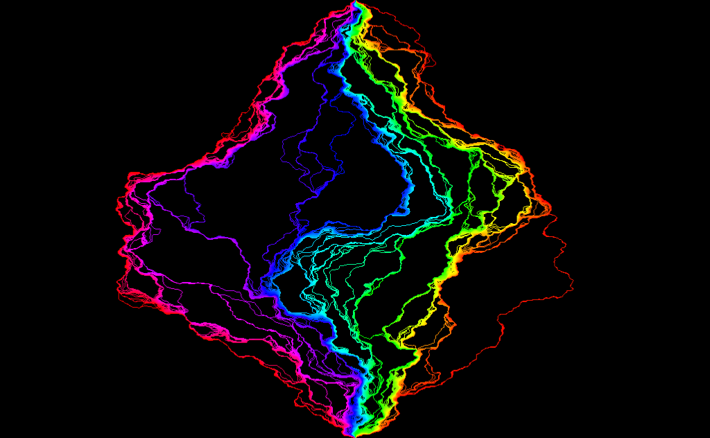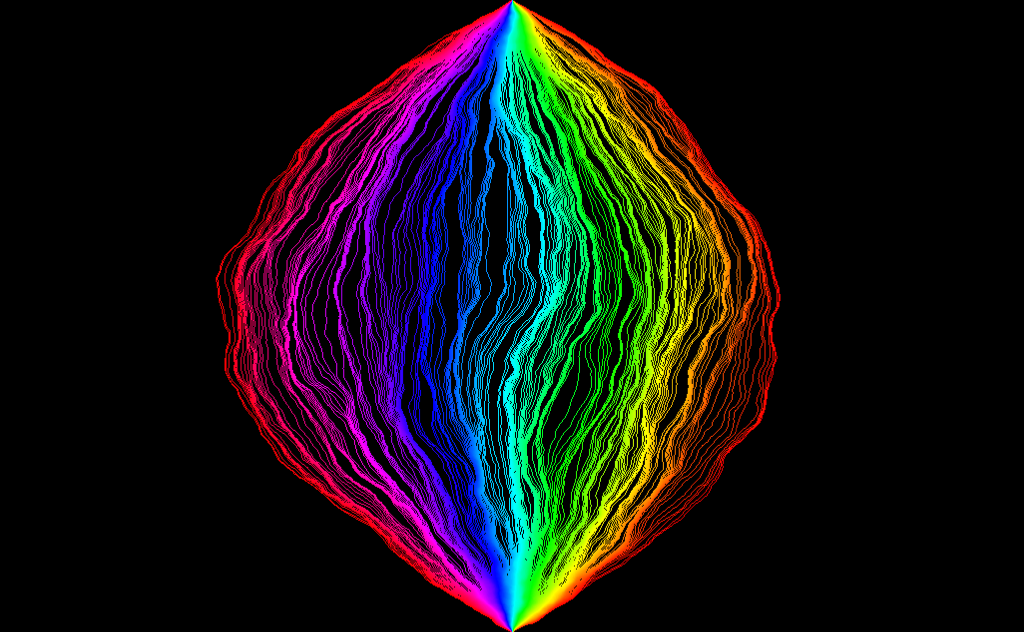Light cone construction of an SLE_k with k=64 using flow lines of the Gaussian free field. The rho values of the curve are chosen so that it only hits the domain boundary at its initial and terminal points.